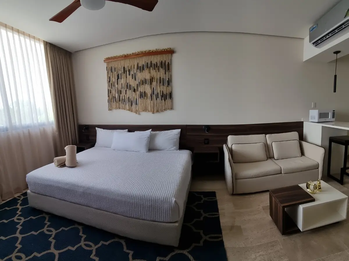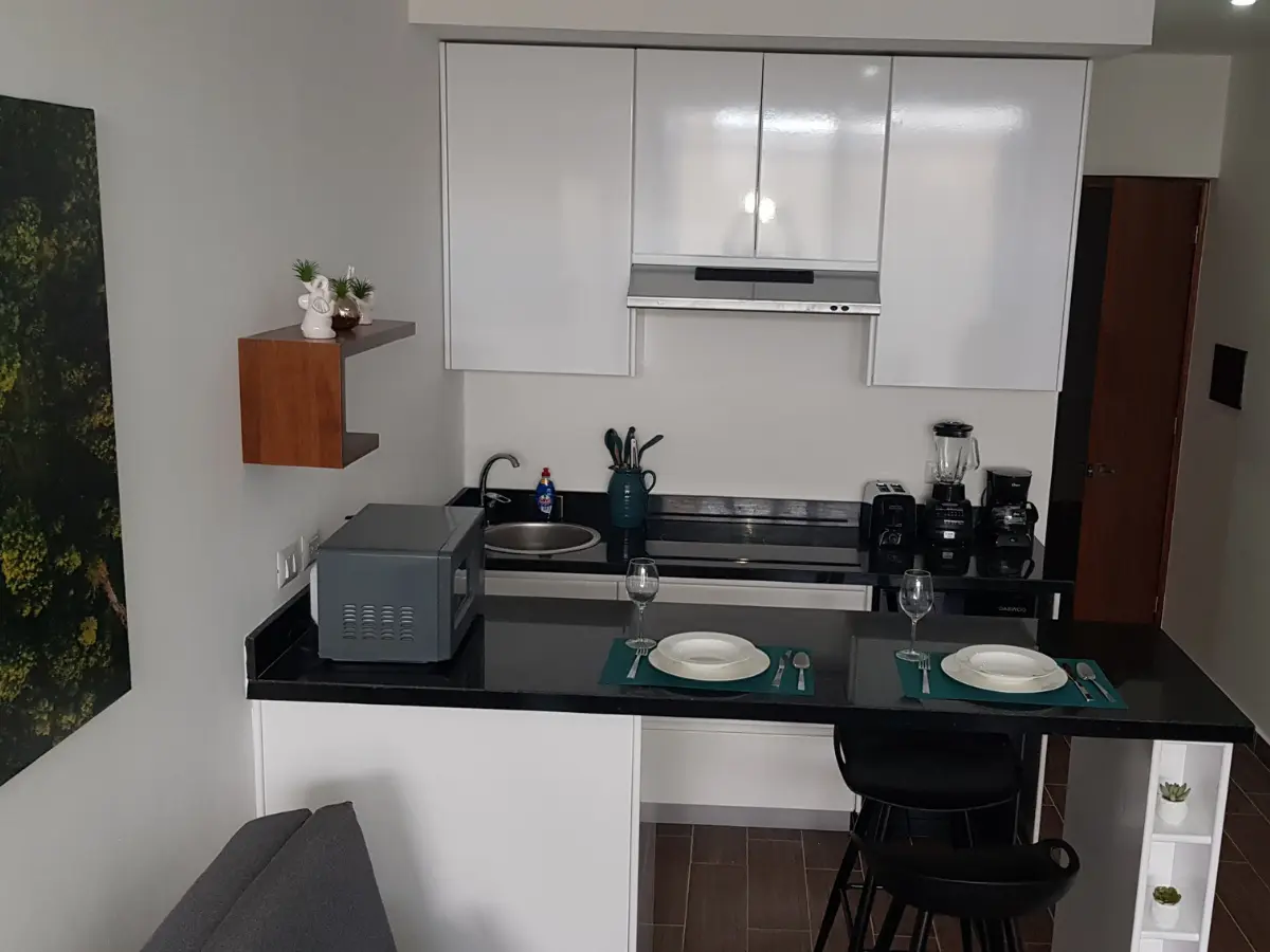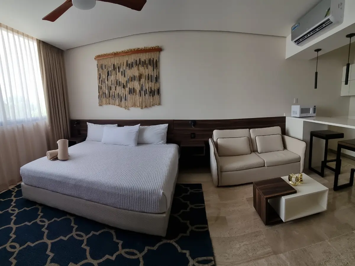Relájate en este acogedor estudio, perfecto para parejas o viajeros solitarios. Disfruta de una cama king size súper cómoda, una cocina equipada con todo lo necesario para preparar tus comidas favoritas y un baño completo con ducha. Relájate viendo tu programa favorito en la Smart TV o mantente conectado con el mundo gracias al Wi-Fi […]